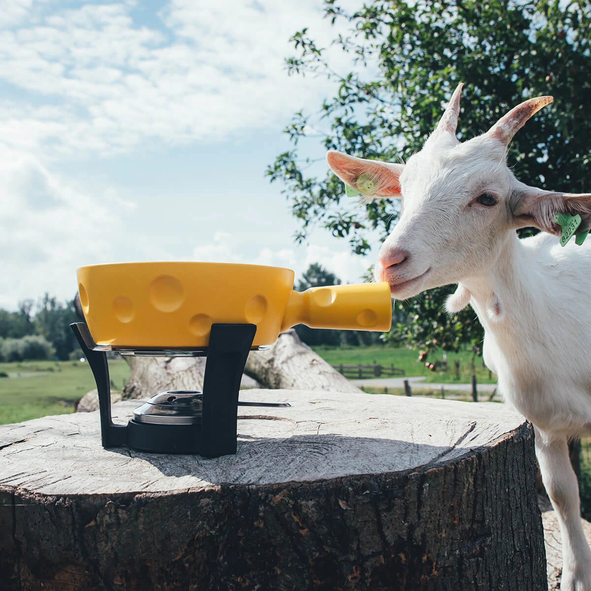 Ongestoord genieten van gesmolten kaas. Dat is wat deze complete fondueset jou biedt. De vuurvaste fonduepan is zo gevormd dat het op een echte gatenkaas lijkt. Nadat je de kaas op het fornuis gesmolten hebt, houdt het gietijzeren onderstel en de brander (werkt o.b.v. spiritus/brandpasta, niet inbegrepen) de kaas voor je warm.