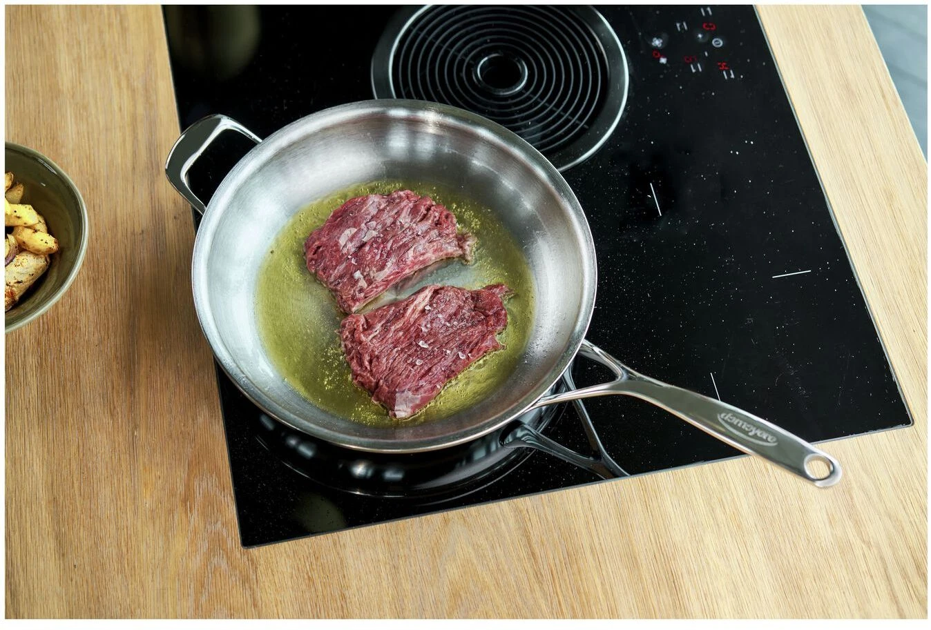 - Roestvrijstaal: Een roestvrijstalen pan is een bewuste keuze, ze gaat immers een leven lang mee.