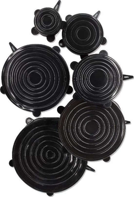 Met de Gefu Siliconen Vershouddeksel Set Flexifresh 6-delig sluit je elke ronde kom, schaal of bak veilig en luchtdicht af. Er zit een handig lipje aan deze vershouddeksels waarmee je de deksels makkelijk aanbrengt en verwijdert. Heb je ze dan toch een beetje vies gemaakt? Je reinigt deze deksels gemakkelijk in de vaatwasser. De set is uitgebreid en erg verschillend in grootte. De deksels hebben de volgende diameters: