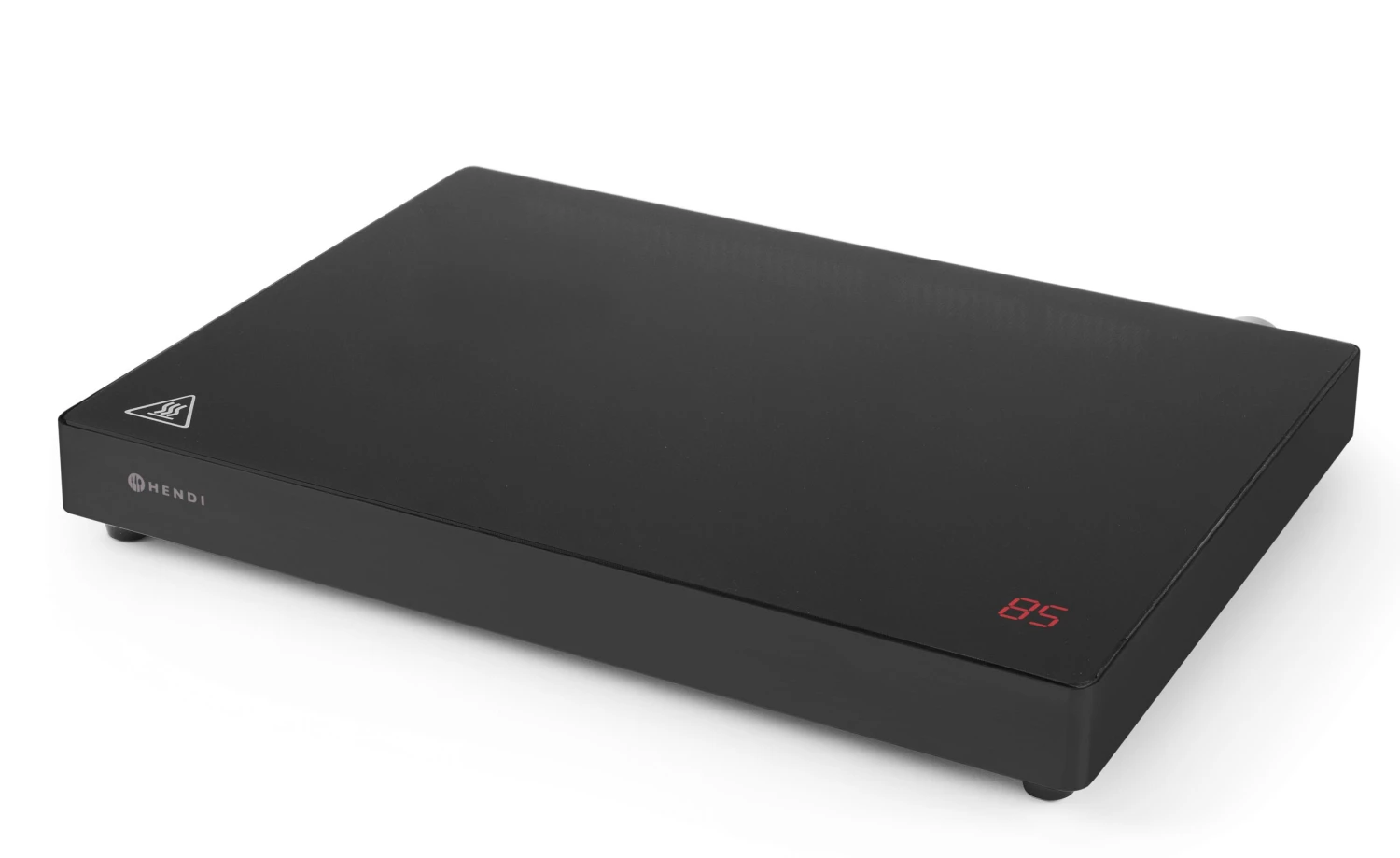 Unieke inductie warmhoudplaat die werkt door middel van een rechthoekige inductiespoel waardoor ook meerdere pannen erop geplaatst kunnen worden. Vermogen in 11 stappen regelbaar d.m.v. draaiknop. Temperatuur bereik: 40-100°C. Uitgerust met elektronische oververhittingsbescherming. Toegestane maximale belasting van de kookplaat: 15 kg.